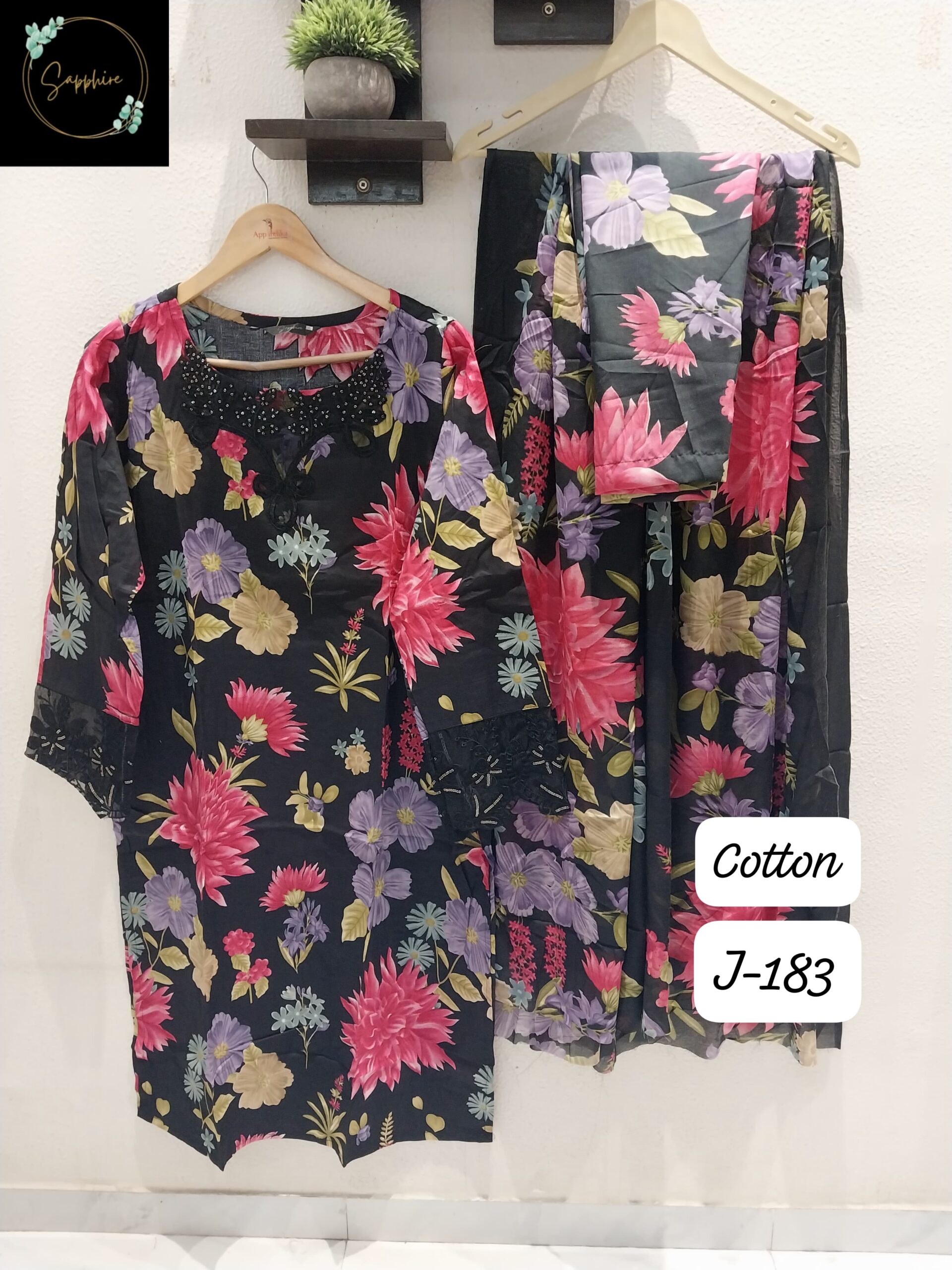 This readymade lawn suit is designed for women who adore luxury in everyday wear. Crafted from premium lawn cotton fabric, it features multiple heavy patchworks that add richness and ethnic charm to your look.
